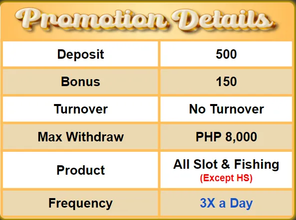 After a successful deposit, the ₱150 bonus will be automatically credited to your account.